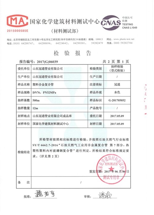 公司是《SY/T6662.7-2024石油天然气工业用非金属复合管第7部分:热塑性塑料内衬玻璃钢复合管》、《SY/T6770.3-2018非金属管材质量验收规范第3部分:热塑性塑料内衬玻璃钢复合管》、《SY/T6769.3-2018非金属管道设计、施工及验收规范第3部分:热塑性塑料内衬玻璃钢复合管》的行业标准起草单位之一。 了解更多