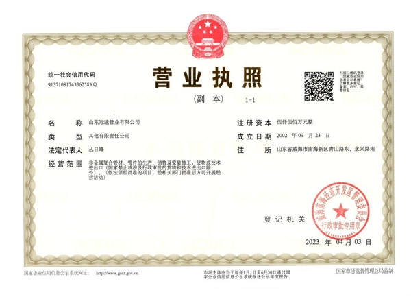 公司占地面积80000平方米,其中生产车间40000平方米;现有员工150余人,其中各类专业管理人员30多人,特聘行业专家、顾问6人。现有10个职能科室,7个生产车间,及山东省中心企业创新研发中心、威海市油气输送柔性管道工程技术研究中心、哈工程、山东冠通海洋管道材料研究中心等多个研发平台。